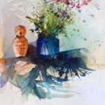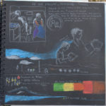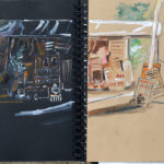 Le matériel aquarelle est peu encombrant. Un dessin simple et quelques annotations colorées nous font voyager.