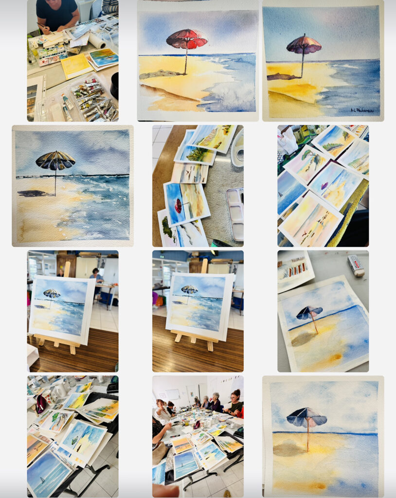 Les élèves ont travaillé sur la maîtrise de l’eau et des pigments, la création de dégradés, les lavis, les réserves, ainsi que les jeux de transparence et de superposition.
