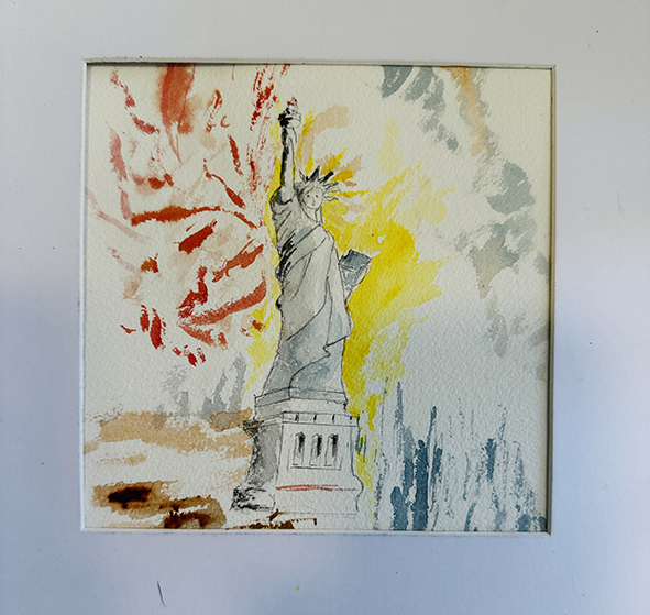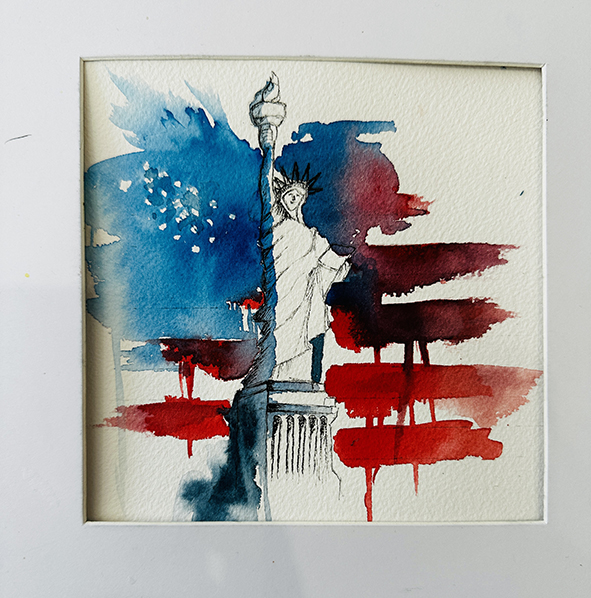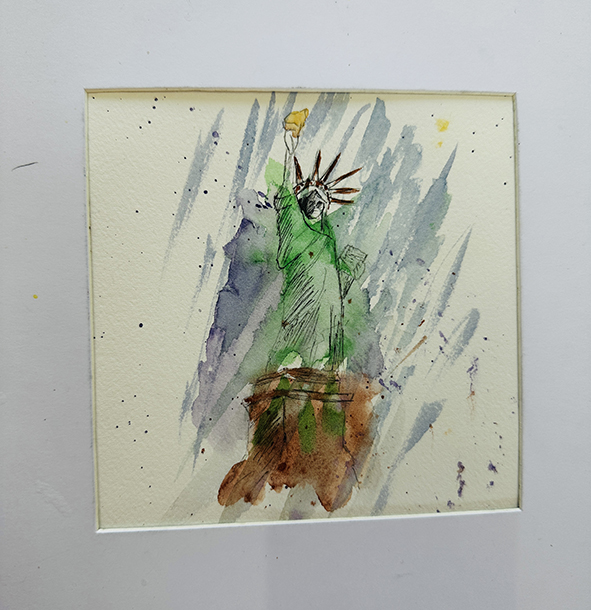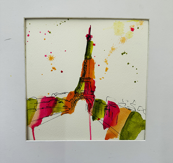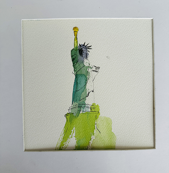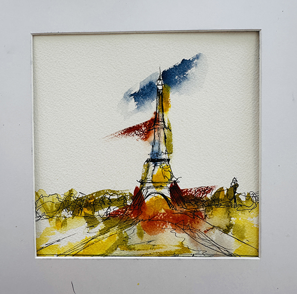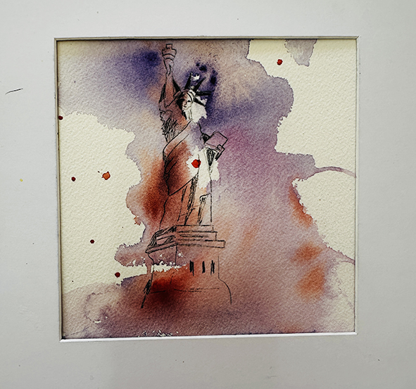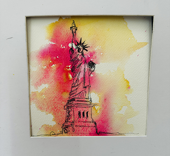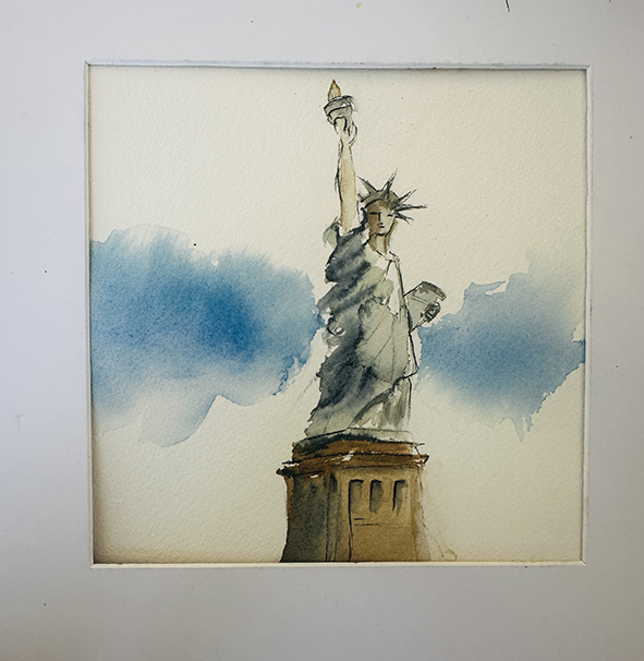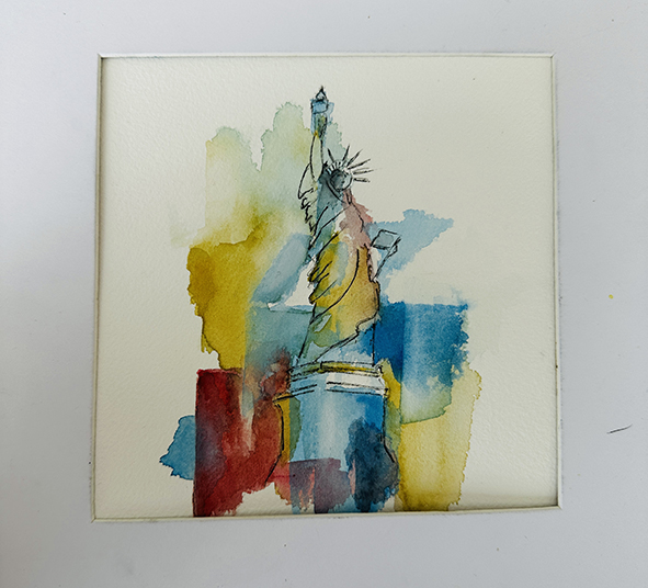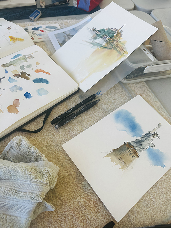 Interpréter des monuments comme la Tour Eiffel, Montmartre, la Statue of Liberty ou le Mont-Saint-Michel en aquarelle moderne consiste à s’éloigner du réalisme pour privilégier l’émotion et le geste. Les formes peuvent être simplifiées ou déformées, tandis que les couleurs deviennent libres et expressives. Les effets de fusion, les coulures et les contrastes avec l’encre apportent une dimension contemporaine, presque abstraite, tout en conservant l’essence reconnaissable de chaque lieu.