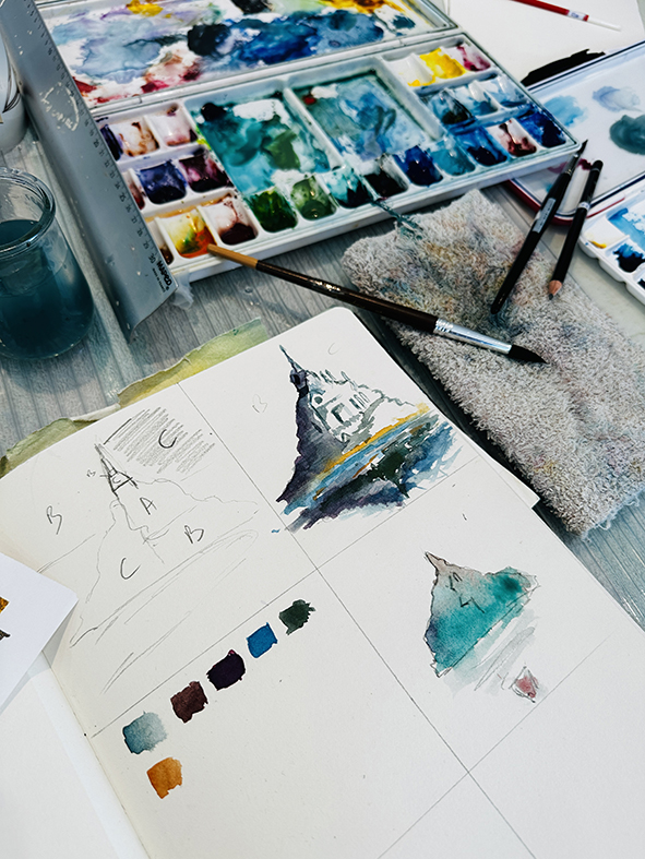 Publié le 24 mars 2026 Dans la catégorieInterpréter des monuments comme la Tour Eiffel, Montmartre, la Statue of Liberty ou le Mont-Saint-Michel en aquarelle moderne consiste à s’éloigner du réalisme pour privilégier l’émotion et le geste. Les formes peuvent être simplifiées ou déformées, tandis que les couleurs deviennent libres et expressives. Les effets de fusion, les coulures et les contrastes avec l’encre […]